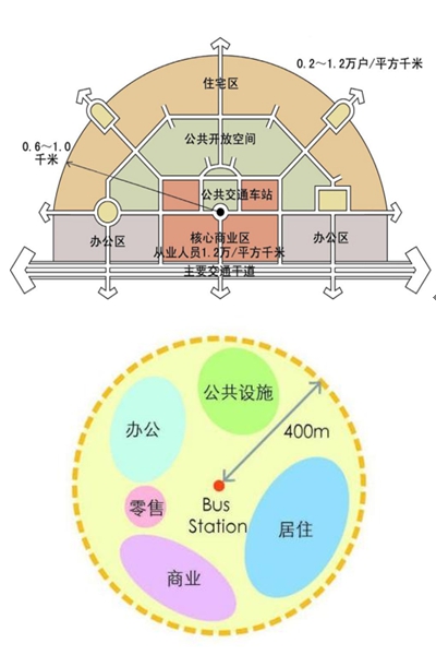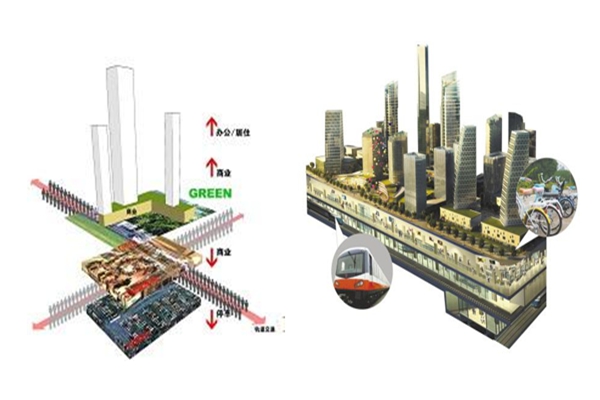 TOD模式:“以公共交通为导向”的开发模式,主要是指以地铁、公交干线等枢纽站点为中心,以400~800米(5~10分钟步行路程)为半径,将出行、居住、工作、购物、休闲、娱乐等功能集中于一体,形成高效、集约、舒适、绿色的城市空间。如今,TOD结合地铁、轻轨等公共交通新技术,纳入绿色、环保和可持续发展理念,已成为大型城市发展规划的首选模式。而TOD模式的内核,与 “十三五”提出的“创新、协调、绿色、开放、共享”五大发展理念亦不谋而合。