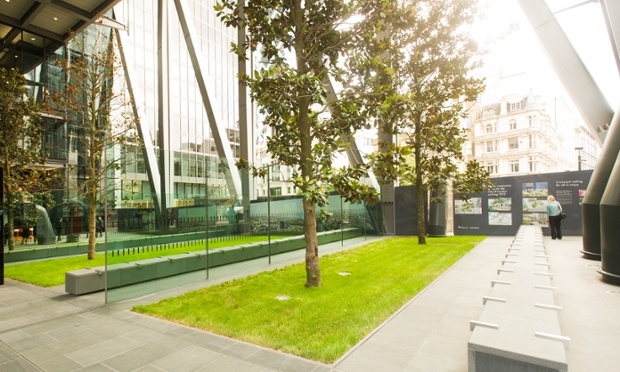 在罗杰斯设计的“奶酪刨大厦”(Cheesegrater)的下面,安排一个高度很高的空间,可能是说服开发商做出的前所未有的让步。但它和一个没有围墙的办公空间没有差别。