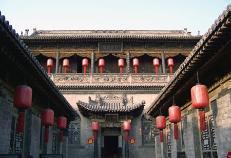 曹家宅院,位于村中央中心位置。大门口,一处别样的中西式结合门楼造型特别。有“平为福”字样和“民国十八年”落款的石匾上方,是中西结合的三层砖雕门楼装饰,其外围通廊三角形和圆拱结合的格式,具有西洋建筑中几何线条造型艺术装饰之美。颇令记者深感奇趣的是,大门两侧的砖雕八字墙,又左右雕造精美的“福”、“寿”字,使这个门楼在浓郁的儒家传统文化气息中,洋溢出独特的“西洋”风情。“从曹家建筑风格的西式元素可以看出,曹家吸收和部分接纳了西方文化,其思想意识和开放心态,在当时的山西商人中算是出类拔萃的。”同行的平顺县文物部门工作人员说。