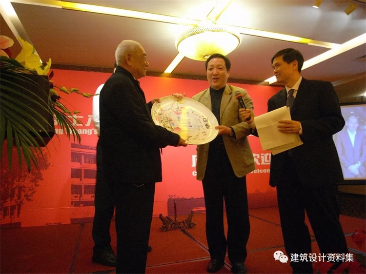 ◇ 为恩师彭一刚先生祝八十八寿,大瓷盘后面有六十多位彭先生弟子的名字 ©《当代建筑师访谈录》