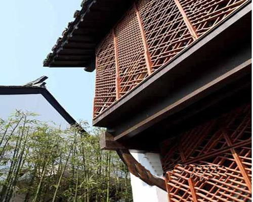 江南会所设计的另一个观点,艾未未为仿古建筑试穿了一身新衣——不仅为屋面做了隔热层,还为所有的老柱子都裹上了一层厚厚的黑色漆膜。在室内的界面考虑上,艾未未似乎特别不能容忍“老宅”原有“肌肤”的老化和陈旧。艾未未在“仿古新做”上,索性将“新做”做的彻底些。所有的6个界面,重则,浓妆淡抹。天,吊了顶;地,铺地板,包括庭院的天井和路面都铺设较新的地材。轻则,墙面除木结构框架保留外都抹成了白色。加上新添置崭新的仿中式家具、窗帘和灯光的配饰,人们似乎再也无法从岁月的沧桑体验、辨认它本来的历史风貌。