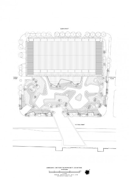水晶媒体墙立面是三维的,在它上面媒体艺术家,艺术生,甚至公众都能使用清晰的图片, 文本,图形以及建筑处理,所有都在一个城市街区尺度。久而久之,这将由周围有创造力的社区建立一种所有权意识,支持开发过程中的各种事件和活动,使Iluma不仅仅是一处零售空间,——希望它成为一处真正的城市场所。在现代城市中,城市肌理受当政者、开放商以及建筑业控制,街道上的普通人对此没有力量影响。Iluma拥有全新的、令人兴奋的潜力,能够给予普通人在城市尺度影响他们生活环境的机会。