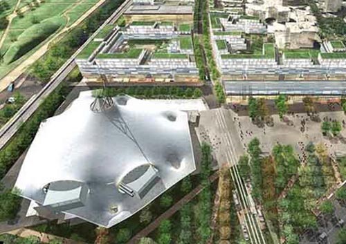 蓬皮杜梅斯中心位于法国梅斯市(Metz)一座新建公园内,酷似一座巨大的草帽,包含了永久性和暂时性的展览区域。梅斯市离一般人观念中的艺术重镇巴黎有相当距离,反而与德国、比利时、卢森堡较近。选择这里主要是因为2007年开通的欧洲东部TGV(高速铁路)竣工后,法国方面希望吸引更多来自东欧和北欧各国的游客,志在让蓬皮杜梅斯中心成为法国艺术家与欧洲其他地域艺术交流的一个区域中枢,当然,也有利于地区平衡的关系。
