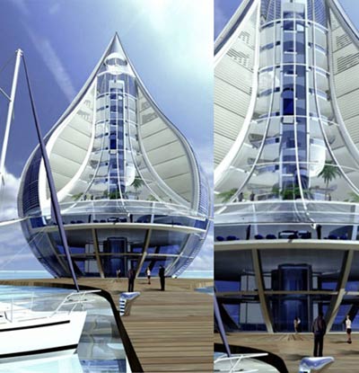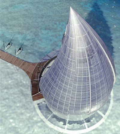 这是世界上第一个将外观形状设计成水滴外型的建筑,并且能利用太阳能可以把空气里的水收集转换成淡水,建筑内部系统可以收集海面空气中的水分,然后通过太阳能、通风系统采用Teex micron设备将空气水分进行净化成为可饮用搞得纯净水。相信在未来的建筑师不仅需要学习建筑学,更应该学习生物学,懂得怎么样保护生态。