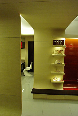 设计师林肇铭在本设计方案除了满足住宅空间的基本功能之外,还对原建筑结构空间进行实验性重构,即:在建筑结构空间里再构筑一个新的空间形态,可以说是空间里再构空间,它摈弃了传统室内设计(或室内装饰)对界面的“装饰概念”(或装饰风格),不重视对各界面单独装饰组合或装饰风格的表现,而是着重对整体环境与空间的重构,这正是本方案的亮点。