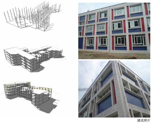 在具体的建造中,应当根据地形和当地的生活习惯完成框架结构,例如早期使用钢结构,后期可使用木材甚至当地的竹材;完成框架之后,当地居民选取户型,然后在柱间建造隔断墙体(墙体在最初可考虑用活动板、模板等临时材料,后可逐步采用当地的石材砌筑)。此外,一部分框架初期可以不使用,后面可根据人们对生活质量的要求或者人口的增长进行扩充。羌族的民居文化特别是某些文化符号,是建筑师无法复制或者生搬硬造的,这部分的工作希望交给当地的同胞来完成,形成一种带有原生形态的建筑风貌。