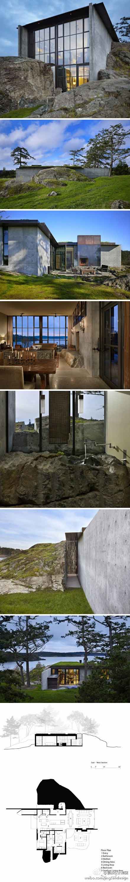 设计师运用粗糙石头创造了一个完全不同的自然生态别墅。它有主卧室,开放式的厨房以及生活活动区域,为使房屋稳固,地基深入岩石内部,使得房屋屹立于荒野岩石之上。别墅内部家具奢华雍容,在原有的岩石构造上修饰,整个室内典雅大气。