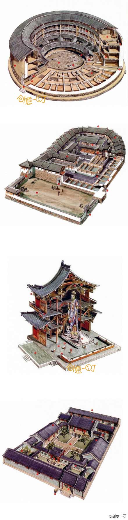 神一样的手绘图稿,中国经典建筑剖视,来自李乾朗先生的手绘图。