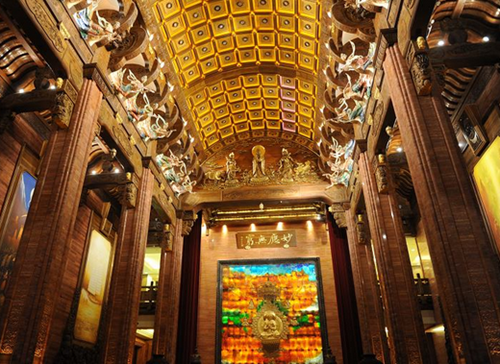 陆嵘: 这个项目有灯光顾问来做具体方案,但大的概念和感受是我们共同探讨的,这个项目还得过一个灯光的设计大奖,当时获奖的有两个项目,还有一个是鸟巢。你去看梵宫的话,灯光的变化,包括新的LED的技术营造出绚烂的灯光效果;加上我们设计的手段,给人一种美轮美奂的感受。因为梵宫的一个概念是把佛极乐世界展现给普罗大众的,灯光是一个非常重要的设计手段。这是宗教空间,我们希望人进去以后内心很震动,所以需要有宗教的气场。神秘也好,绚丽多姿也好,一定是不同寻常的;和人进入商场、酒店或者会所这样一般的世俗世界相比,需要让人感受到一种超乎寻常的、未曾想到的概念。比如在西方以前没有电,通过彩绘玻璃,当阳光通过彩绘玻璃,让人感觉仿佛是天国射下来的光。