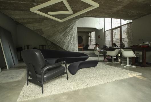 创盟国际办公室后院的茶室,是袁烽参数化设计的样板,贯通上下两层的扭转的墙面是参数化设计和粗糙手工的结合。