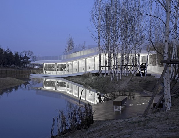 华黎“水边会所”,注重空间通透性、层次感和流动性。透明使建筑的物质性被消解,取而代之的是对外部的水、竹林等自然环境的体验的营造。