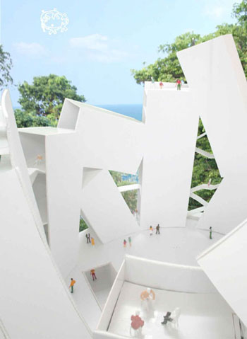 前不久,我的设计在教皇约翰保罗二世中心国际设计竞赛中获选为最佳方案,这也是一件让我特别感到鼓舞的事。对我来说,这是一个证明中国建筑师能不能在欧洲得到承认的机会。如果我能在欧洲拿个第一名,说明我们创造力不输给别人,没理由自己看不起自己。报名还没定下来之前,一天有个朋友给我介绍一个十几万的工程项目的设计,一个月就可以做好。我做起事情来是非常专一的,公司小又不可能同时接很多活,如果接了这个项目就不能兼顾竞赛了。我在办公室里绕来绕去好几圈,盘算钱重要还是理想重要。十几万是可以潇洒一阵子,但没了就没了,对我的生命没有多大意义,我决定还是参加竞赛。这个设计做得很辛苦,我要来了保罗二世的照片、资料,仔细研究,对着照片,在想象中跟他本人对话。那时经常工作到凌晨两三点。功能都解决了,但还要有个立意,要有个说法。一天夜里又工作到很晚,一个人走在黑漆漆的办公楼走廊里,忽然就看到前面恍恍惚惚出现一个透明电视屏幕一样的东西,播放着保罗二世的音容笑貌。于是我的立意来了:光!保罗二世的思想就像光芒一样四射,我的设计就是一个放射状的结构,正好可以结合在一起。我想,这或许就是精神长期高度集中带来的灵感火花迸射吧。