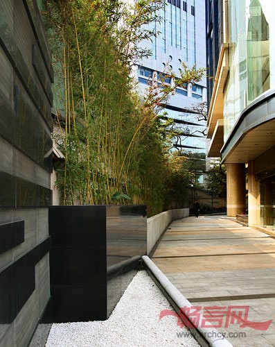 门厅的设计先抑后扬。天窗下一幅两层高的石墙铺砌成时间表的图案,名曰“一寸光阴一寸金”。走廊两侧高墙作山——“登高使人意远”;继而入“胜”——“临深使人志清”。中国园林里的“池”是整个庭园中最开阔的空间,反映了设计的灵魂与核心。我们这一池的“清水和鱼儿”都是来自天上——阳光透过玻璃鱼池把它们鲜活的身影投射面前,浮动的光线吸引你想去抓住那穿梭的小鱼。这个小景源自中国的古语“与其临渊羡鱼,不如退而结网”。