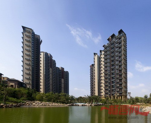 高层住宅充分利用外部的景观资源为主导,户型设计强调外部景观和开阔视线。住宅平面主要采用大面宽的板式和两梯三户的点式平面。布置于地块中偏南的多、低层住宅先天具有亲地的特点,小区内部景观占有的优势明显,在心理上拉近了人与郊野公园景观的尺度。不同位置的住宅对于环境来说各有所取,体现住宅设计的均好性。