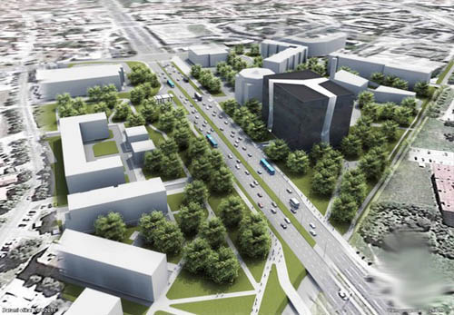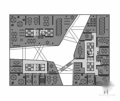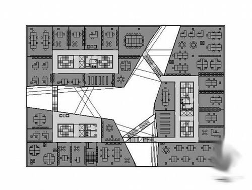 这个项目位于复杂有力的城市环境中,周围由繁忙的道路,公园空间和住宅空间,设计方案的目的是为了解决项目内部自身的城市特性,同时为周围的发展起到一定 的引导作用,设计师通过一个立方盒子的形式实现此个目的,同时在内部切入很多通道,以突出环境对内部方向线条的影响,另外将使用者进一步拉近到内部的环境 之中。
