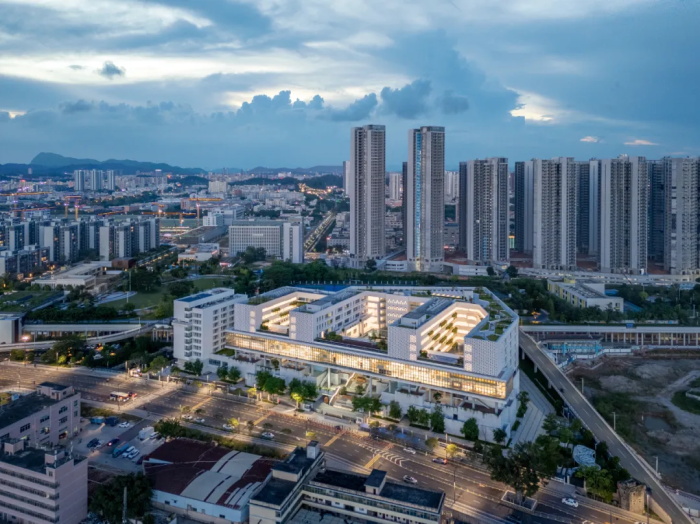 市宝安中学(集团)第二实验学校位于松岗车辆段,场地内存在 10 米高差。一半用地位于地铁车辆段站房屋顶,仅能布置场地而不能用于建设,另一半用地需