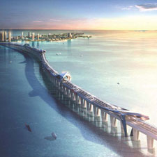 项目海面直线宽度4.4公里,桥梁总长7公里。经测算,岸上视点距离主桥均在2km以上,难以形成有效视点,因此桥梁景观主要考虑桥面车辆上的人群。桥上