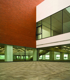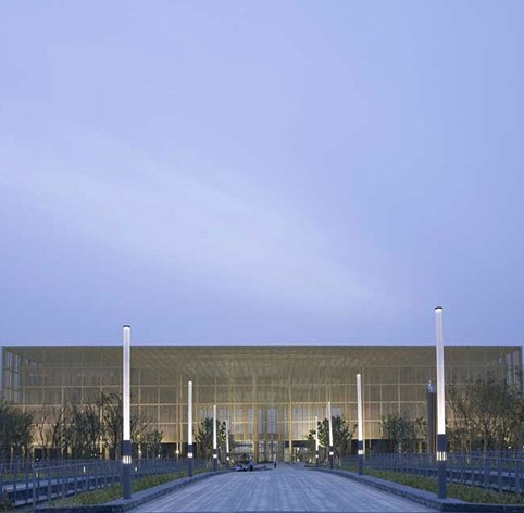 管理中心最基本的设计意图是创建开放式的、生态化的、具有可持续发展能力的节能办公空间。两座平行的办公建筑之间自然形成一个园林广场,中央公园引入管理