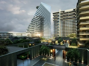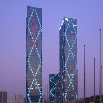 项目位于深圳福田CBD的中心地块。项目功能由星级酒店、购物中心、写字楼、公寓型住宅、商务型住宅(SOHO)共同组成,并且带有内外连通的城市广场,