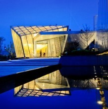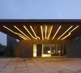 本案作为万科草原住宅本土化楼盘的售楼处,选择以一种更为隐喻的形象对项目地域性作出解答。极为单纯的体量关系,多有销售功能地下空间,配以两层通高的玻