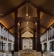 坐落于海南陵水县香水湾的君澜度假酒店,背靠热带和亚热带的分界岭—牛岭山脉,面朝浩瀚的南中国海,与南海诸岛相映成辉。2006年业主展示了基地位于三