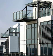设计还采用了多项生态节能措施,用来应对于当地气候,其中包括:窄进深双面采光的办公单元;建筑底层架空;广场层连接各单体的连廊系统;广场绿化及浅水