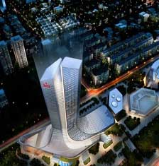 作为西北地区第一高楼,宁夏亘元国际中心大厦的地标位置毋庸置疑。216米高的建筑体量被分成两个部分,建筑形体挺拔有力,裙房由主体向两侧自然延伸。正