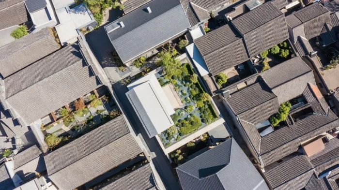 “引庭”的概念源于场地隐秘而内敛的地理位置和城市肌理,这里承载着即将被遗忘却极具意义的城市记忆。作为适应性改造项目,如恩试图将这一老旧建筑群改造
