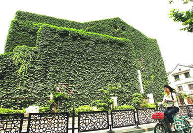 一墙爬山虎,曾是许多上海人盛夏里的清凉记忆。绿油油的爬山虎奋力从墙根往上爬、往四面伸展,渐渐布满墙面,好似织一件厚实的“绒衣”。披上绿色“绒衣”