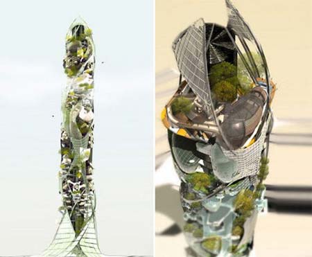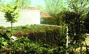 屋顶植物 屋顶设有蓄水池,池中种有植物,还设有光伏能源吸收板材。此举能改善楼体的隔热性能,减少能耗,而植被可利用雨水浇灌。