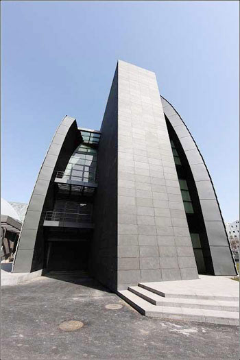 中央美院美术馆由日本建筑大师矶崎新(ARATA ISOZAKI)设计,新的美术馆位于望京花家地南街8号中央美院内,校区用地的东北角,建筑占地面积