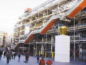 一座由钢管和玻璃管构成的庞然大物、硕大且五颜六色的各种管线设备,以及钢铁桁架故意暴露在外墙,使整个蓬皮杜文化中心像一个正在建设中的工地,特别引人