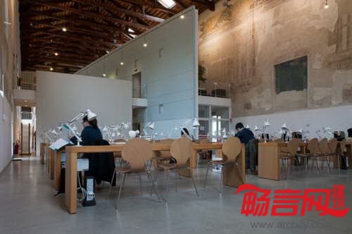 位于意大利Ferrara,建于14世纪的Santa Maria delle Grazie教堂如今成了Ferrara大学生物化学图书馆。图书馆每天