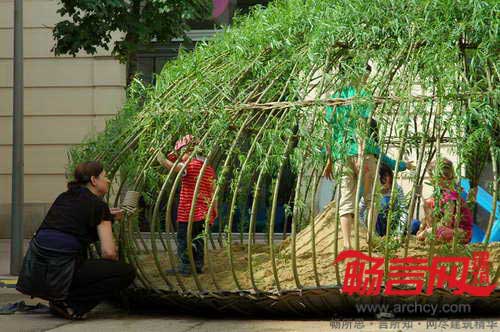 奥地利建筑事务所PPAG为维也纳博物馆区设计了一处名为“Kagome”的游乐场——由120株柳树苗构成球根状结构,通过弯曲植物并使用酒椰树纤维编