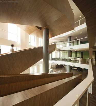 设计依据场地的形状,尽量减少空间限制的影响。事实证明:独特形状和空间的利用也是个出乎意料的机会。设计师在空间前部设置了一个三倍高度的开敞门厅。