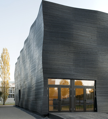 Interims Audimax位于慕尼黑技术大学数学和计算机院的北面,是一栋临时性的教学楼,使用年限为10-20年。项目设计方案来自建筑设计公