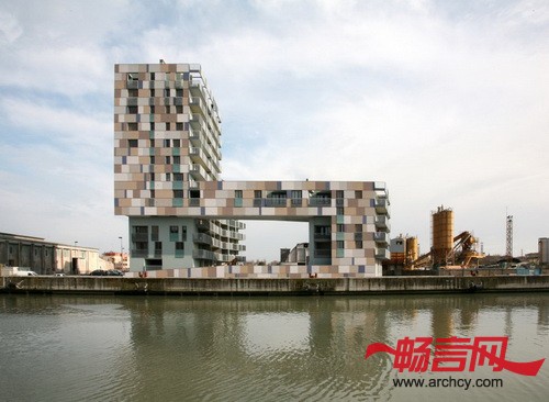 这座新住宅楼是拉文纳城市翻新项目的一部分,它靠近拉文纳火车站。拉文纳火车站位于一条人造运河的两旁,运河是该市工业区的码头。由Boeri工作室设计