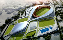 印度设计公司Studio Symbiosis刚刚举行了这座波浪形体育城“运动之浪”的奠基仪式,印度国大党主席索尼娅•甘地出席了该奠基仪式。该仪式