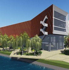 医药园区分为生产和生活两大部分,设计克服了基地狭长又被河打断的劣势,充分利用河景,合理规划了流线布局和沿参观流线的景观。
