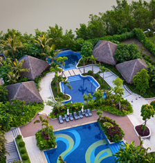 三亚凤凰水城凯莱度假酒店景观设计基于三亚著名的风景元素,参照当地的黎族文化,对他们的建筑,手工艺品等艺术进行独特的现代方式演绎,创造出一个热带的