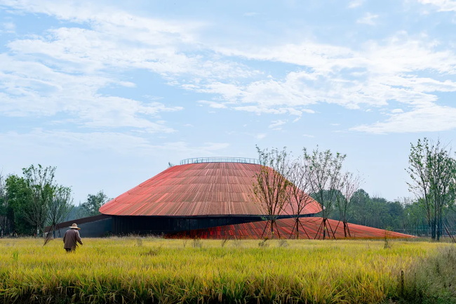 博物馆总建筑面积约7200平方米。为最大限度地弱化地上体量,将主要功能及后勤用房置于地下,地面仅保留约三分之一体量,作为门厅与临时展厅使用,实现