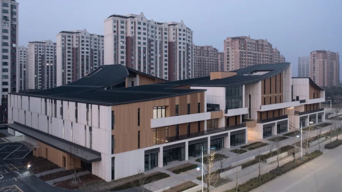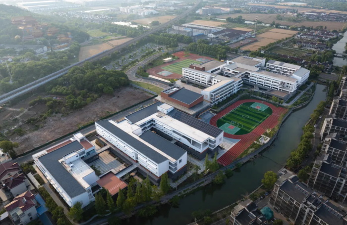 项目位于上海市奉贤区柘林新镇。同样由集合设计完成的新镇城市设计提出了南北向主街指状公共空间向地块内延伸的空间策略,建筑的空间布局遵循了这一导则建