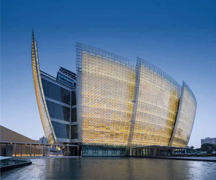 广州美术馆项目选址于广州新中轴线的关键位置,介于代表城市形象的广州塔与代表工业遗产的TIT创意园之间,总建筑面积近80 000 ㎡,是一个集收藏