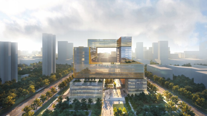 MVRDV为上海兰桂骐技术股份设计了企业总部基地兼中国技术研发中心,总部基地大楼共有11层,采用一个“漂浮”的功能性屋顶,将不同技术难度的可持续