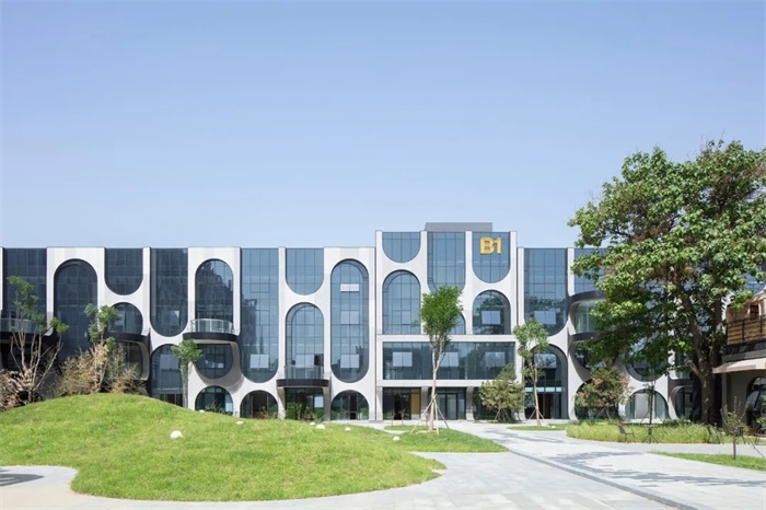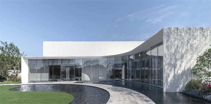 建筑整体为白色,简洁的白色并不简单,追求的是一种纯粹的、无杂质的艺术效果,是一种对城市和生活的理解。弧面形态和通透玻璃界面,将引景入室作为设计的
