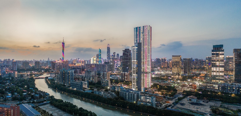 由Aedas打造的广东邦华环球贸易中心,坐落于广州海珠区新港东路,是琶洲互联网总部经济区的中心位置最高的建筑之一,230m 的高度与广州塔隔桥眺