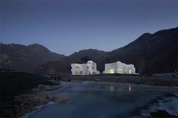 热河山谷天空院子坐落于河北隆化县七家温泉镇,场地背山临溪,呈半月型沿峡谷铺展开来,从北京驱车而来沿途散落着多处荒废已久的长城遗址。因距北京不远,