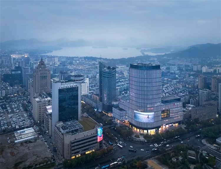 一座扩建后的建筑刻画了杭州这座900万人口大都市的天际线。杭州国大城市广场主塔楼高130米,是重建和扩建工程的重要组成部分。国大城市广场是城市传