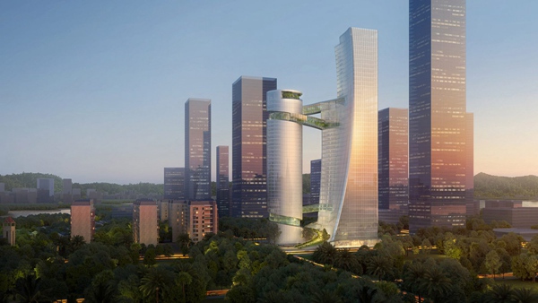 荷兰MVRDV事务所设计了台北的双子塔,由一组覆盖互动屏幕的错位方体堆砌而成。项目名为台北双子塔,高度分别是337米和280米,由MVRDV和C
