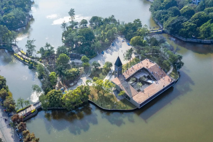 场地现场原来是一小片市政公园,是周边几个居住区的公共生活的核心。我们希望保留这种“公园”的状态,遂将蛇口文体公园项目的场地以五五对半的用地方式划